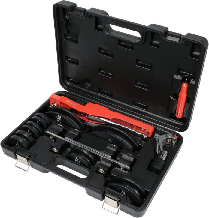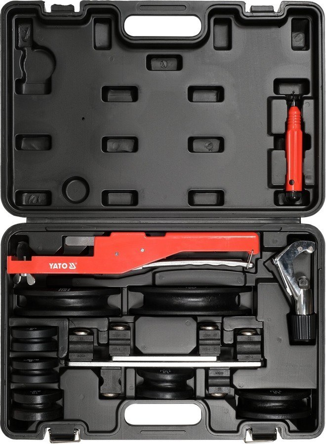 YATO YT-21847 to profesjonalna giętarka kuszowa przeznaczona do precyzyjnego gięcia rur miedzianych, aluminiowych, mosiężnych oraz z miękkiej stali.