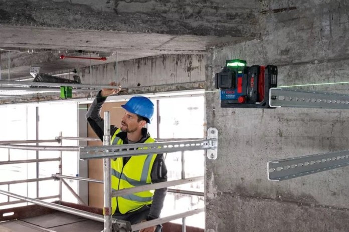 Laser liniowy Bosch GLL 18V-120-33 CG Professional to sprzęt stworzony dla profesjonalistów. Dzięki klasie ochrony IP65 jest odporny na kurz, pył, wodę i wstrząsy. Wzmocniona obudowa oraz gumowe osłony gwarantują niezawodne działanie nawet na wymagających budowach.