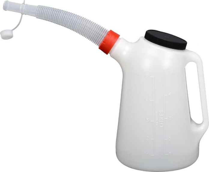 🧴 Pojemność 5 litr – idealna do odmierzania i przelewania płynów technicznych.