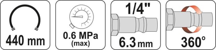 📏 Wąż o długości 440 mm – zapewnia komfort pracy w trudno dostępnych miejscach.