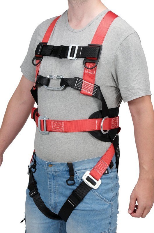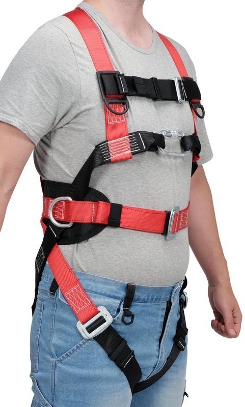 Ten produkt to synonim solidności i wytrzymałości. Pasy, wykonane z wytrzymałego poliestru, o szerokości 45 mm i wytrzymałości wyższej niż 27 kN, gwarantują ich wysoką odporność na zerwanie (wytrzymałość statyczna >22 kN). Szelki posiadają dwa punkty zaczepowe (tylni i przedni), co pozwala na wszechstronną pracę.