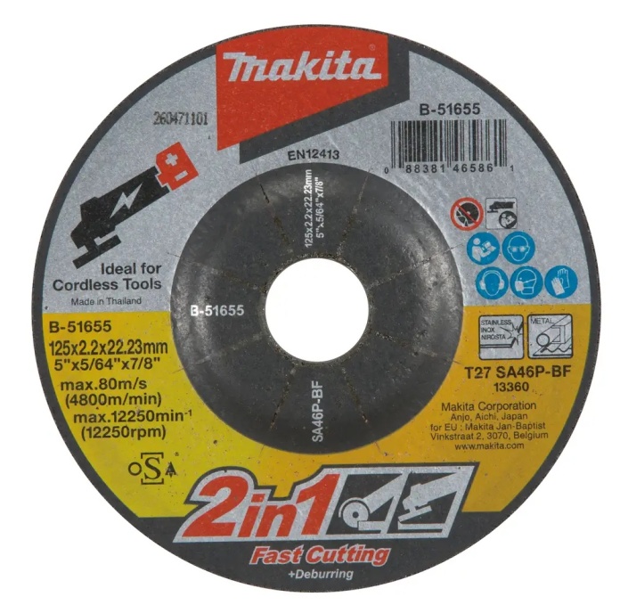 Makita B-51655 to profesjonalna tarcza szlifierska typu 2 w 1, stworzona z myślą o szybkiej, czystej i precyzyjnej obróbce metalu oraz stali nierdzewnej. Wyróżnia się ziarnistością SA46P, która łączy wysoką wydajność skrawania z delikatnym wykończeniem powierzchni.